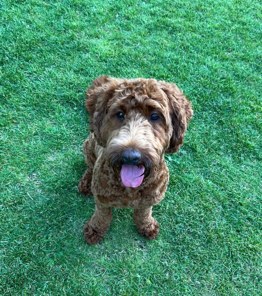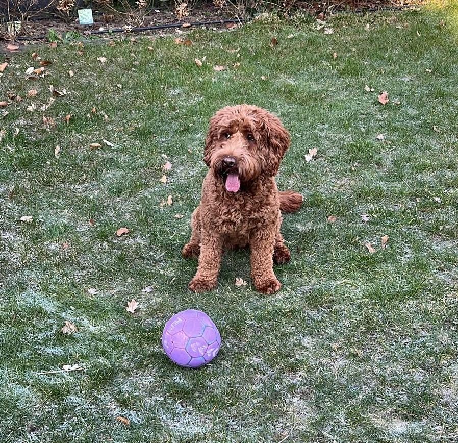 Dit is Quinn. Officieel heet hij De Bonte Labradoodles Django maar wij hebben hem de roepnaam Quinn gegeven.