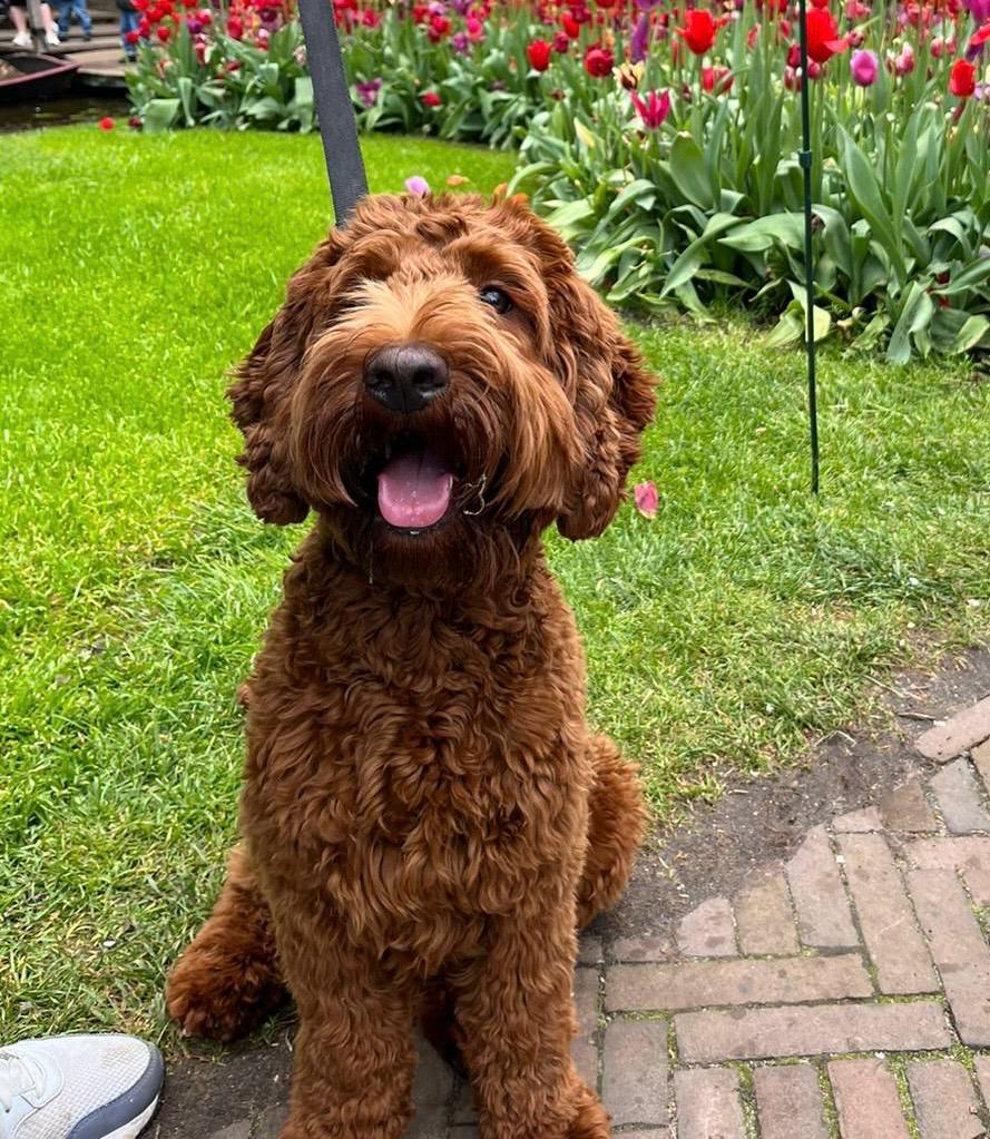 Jetje is een onze weinige mini Doodles. Ze is ongeveer 45 cm.