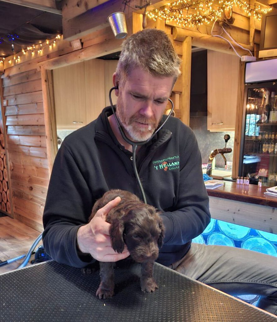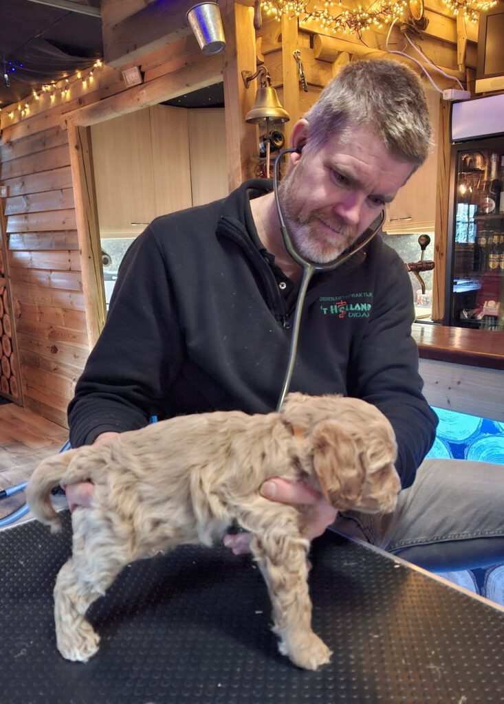 6 weken oud : dierenarts Egbert van het Holland heeft de pups allemaal geeënt en gechipt. Hij vond het een mooi nestje!